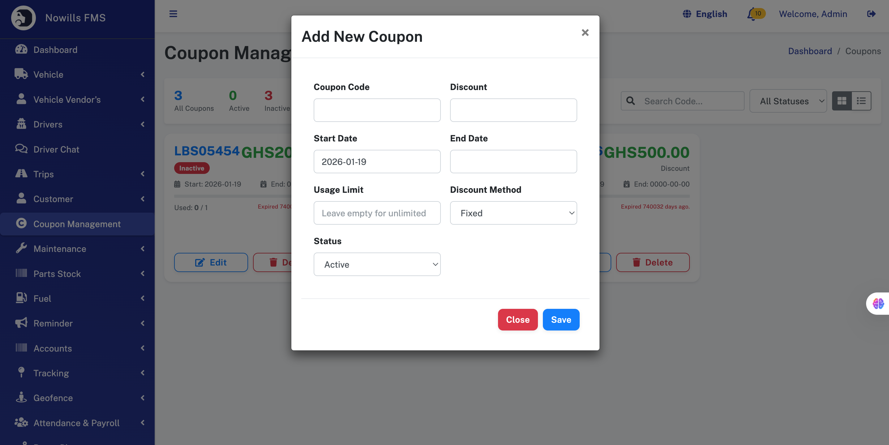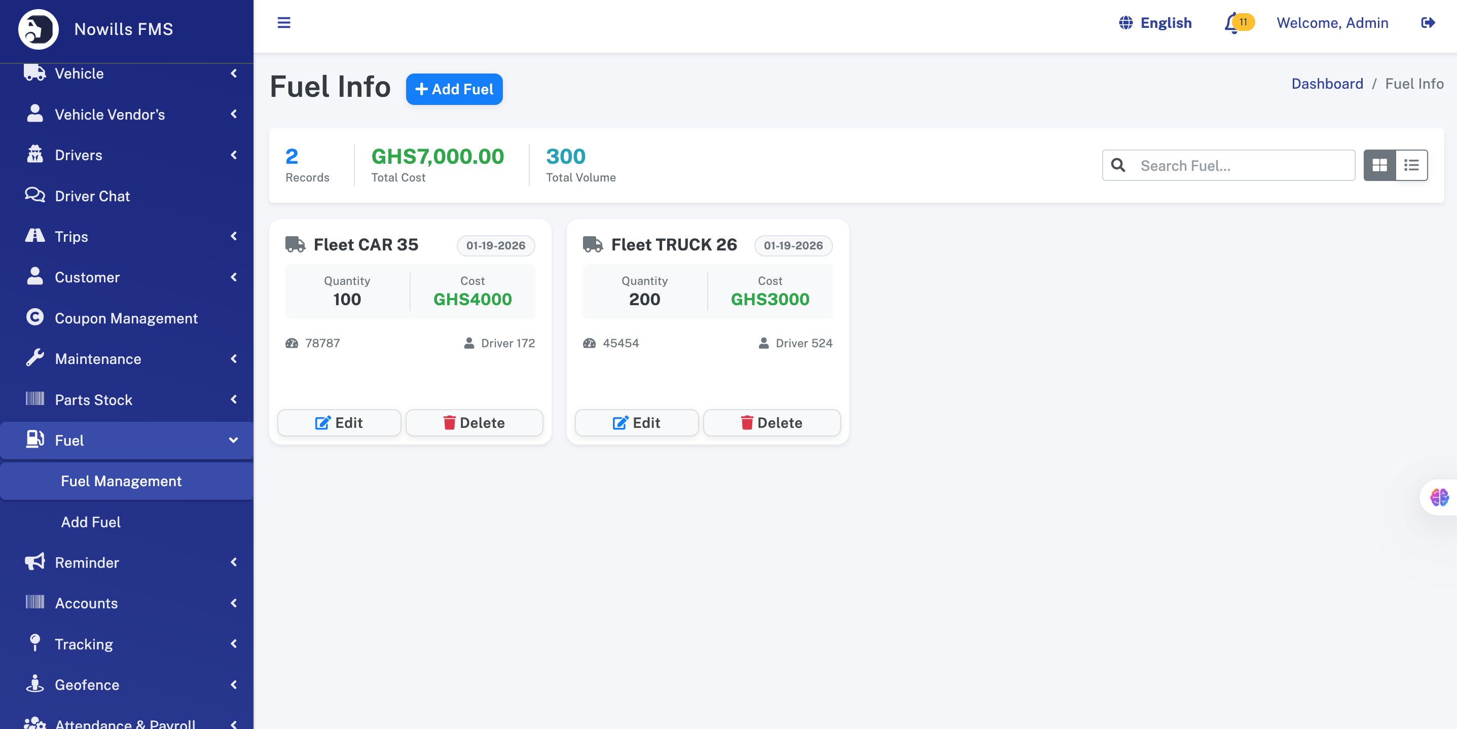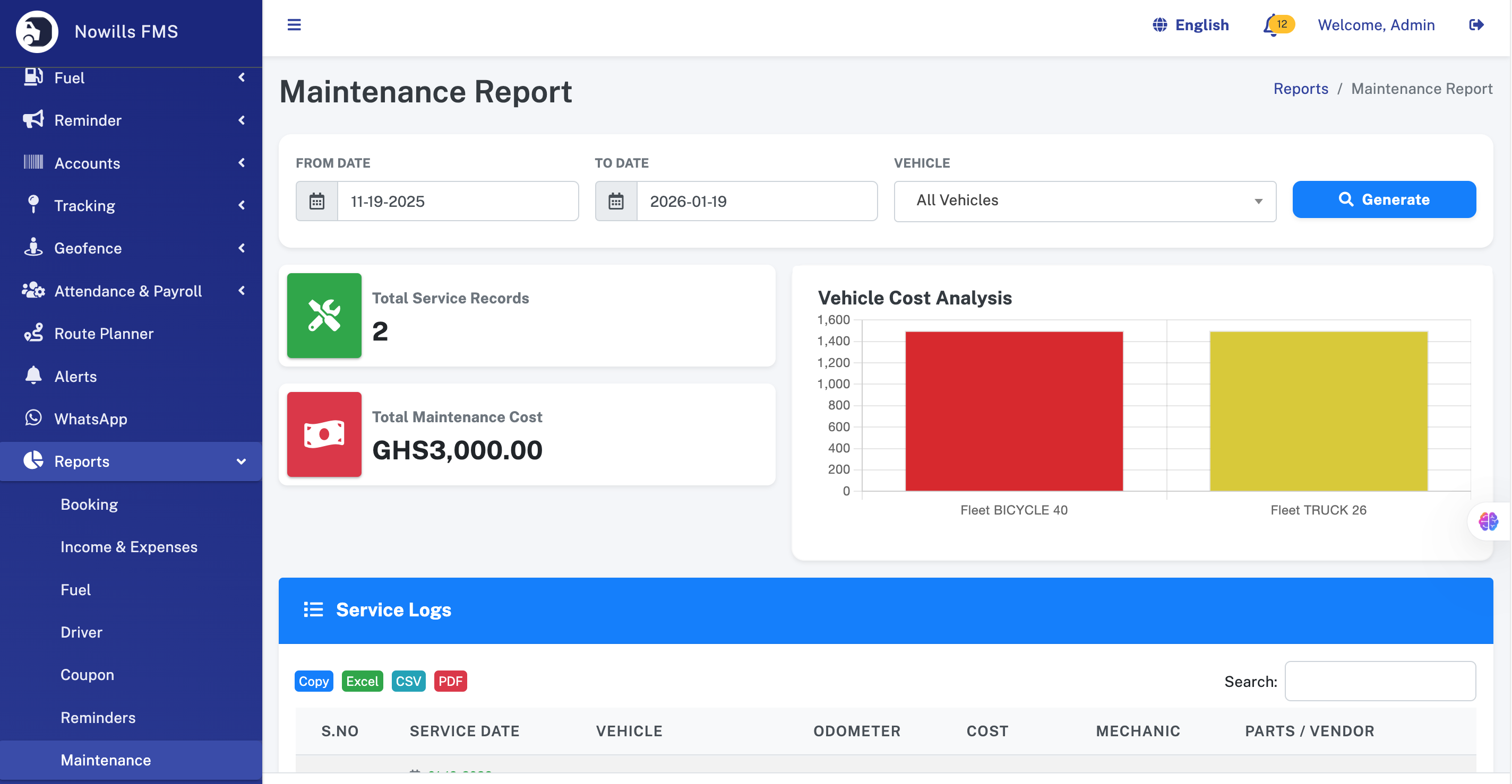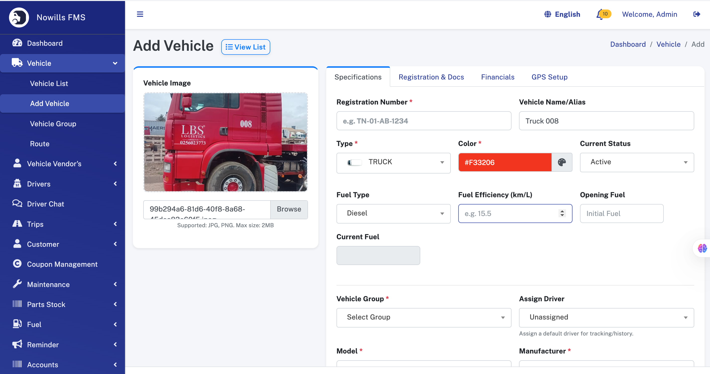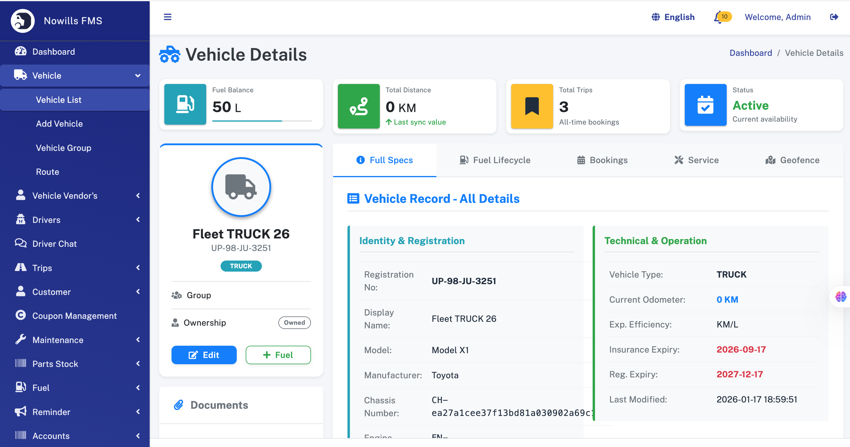 Product: Nowills FMS - Fleet Management System