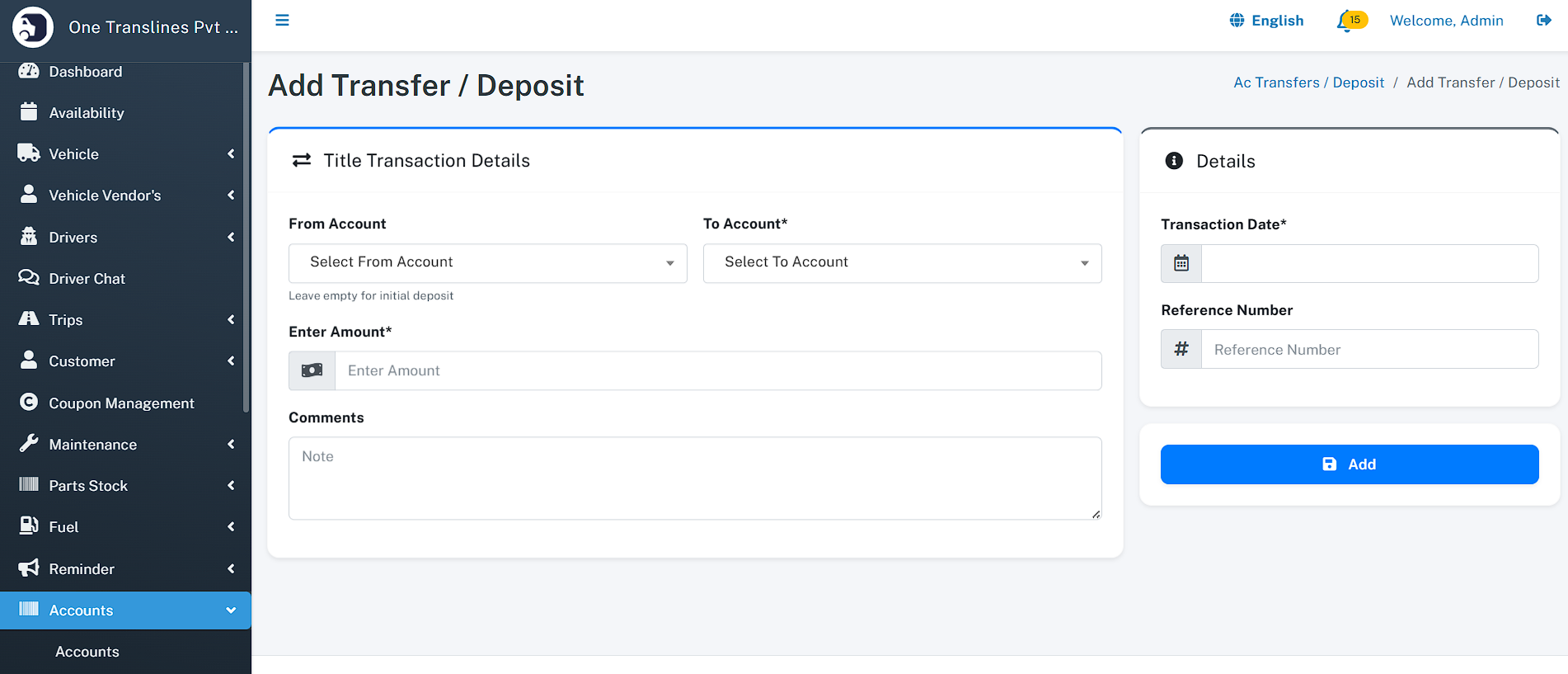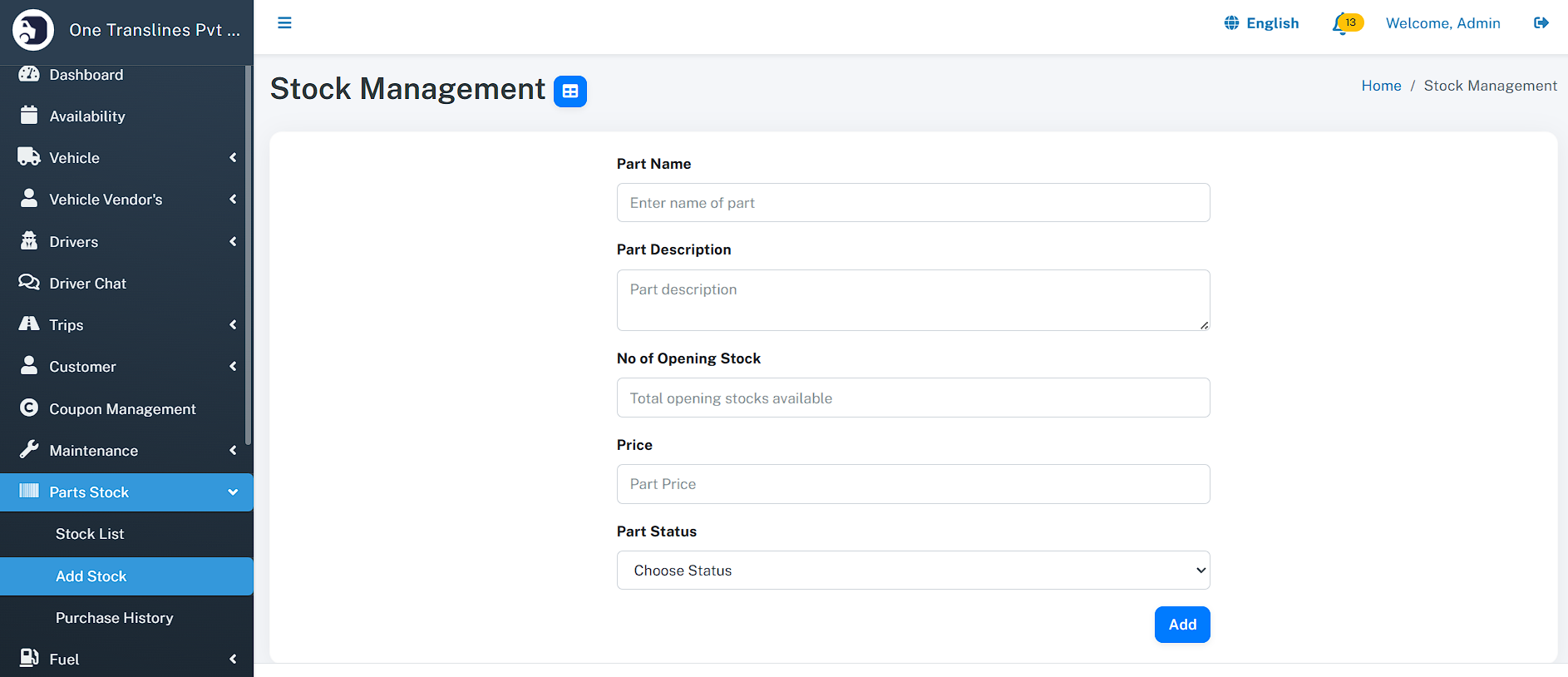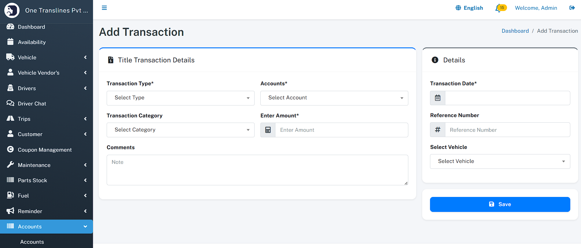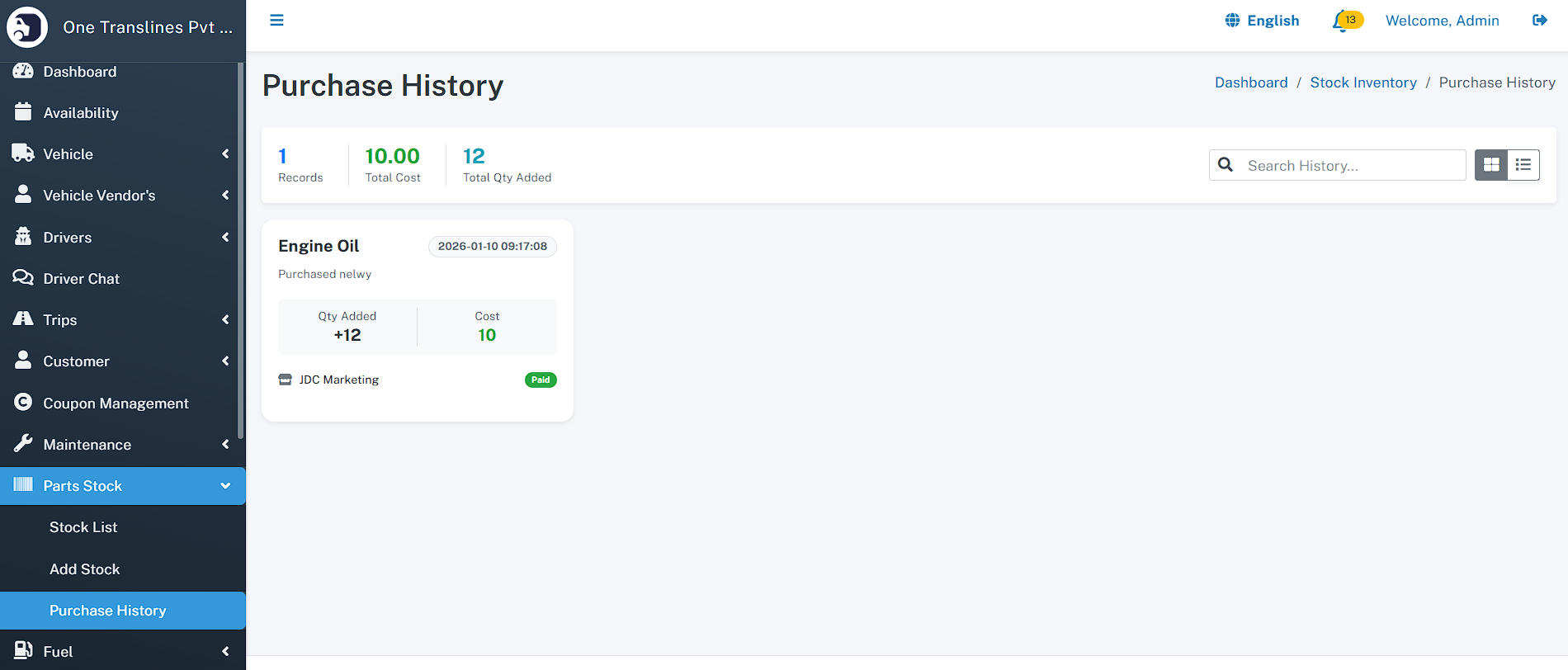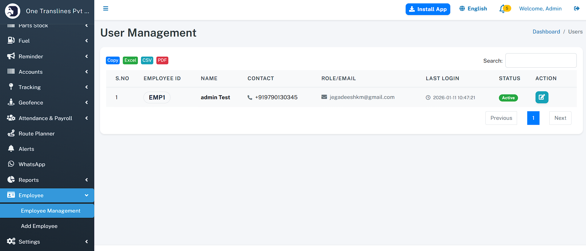 - Total Assets: Instant count of total Vehicles, Drivers, and Customers.