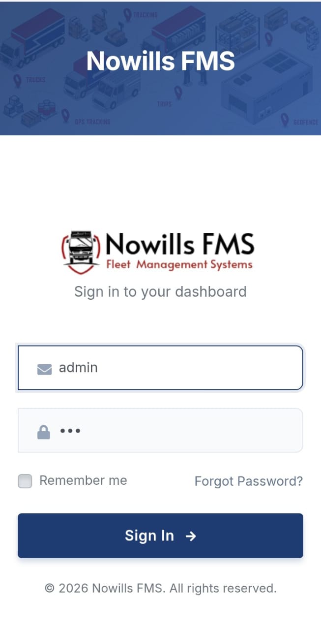 Nowills Fleet Managment System (FMS) is a comprehensive, enterprise-grade Fleet Management Solution engineered to streamline your logistics operations. It simplifies managing vehicles, drivers, and customers while providing deep insights into income, expenses, and operational performance.