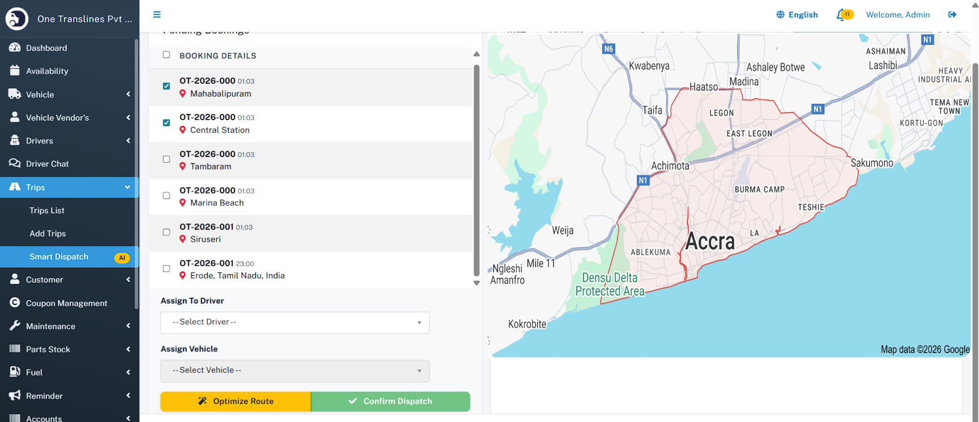 - Trips - Trip List - Add Trip - Smart Dispatch (AI)