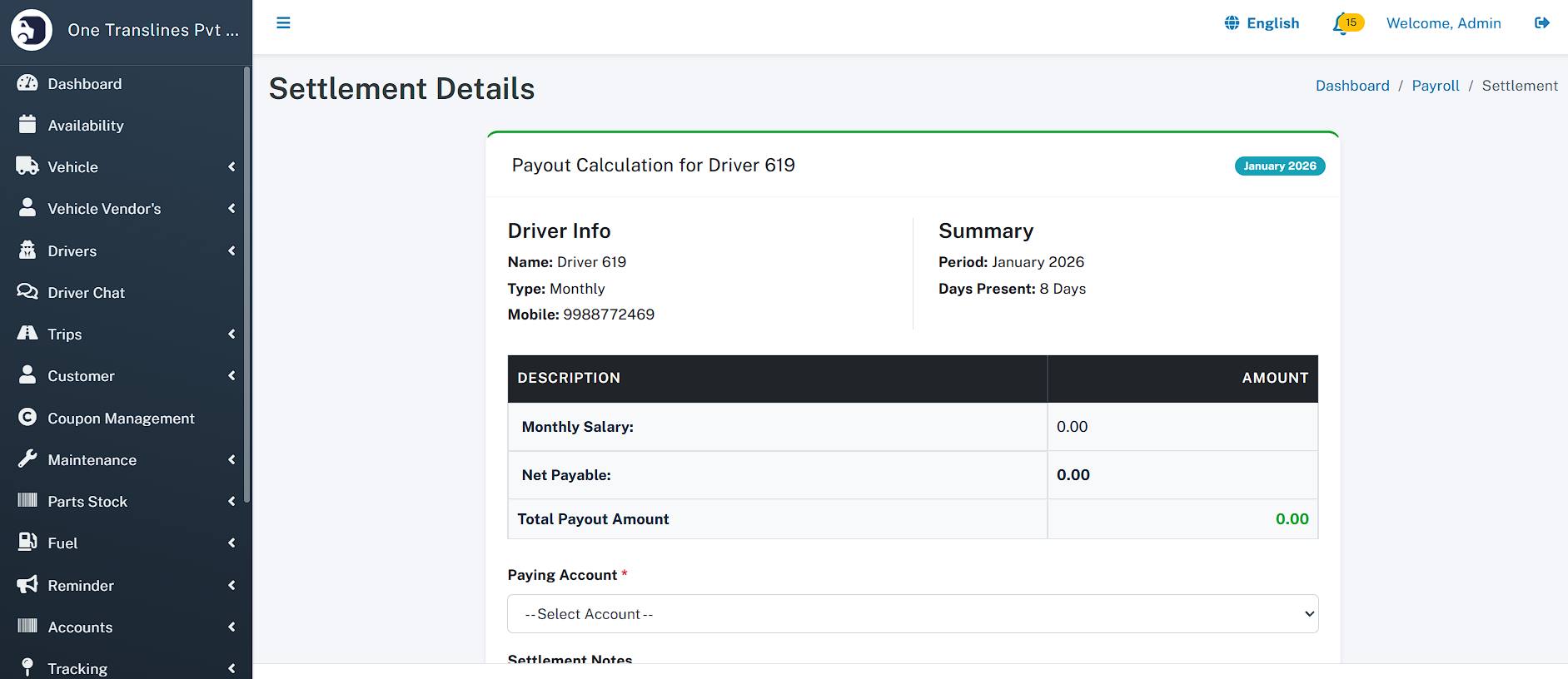 - Use a custom-built driver app integrated with Nowills FMS APIs