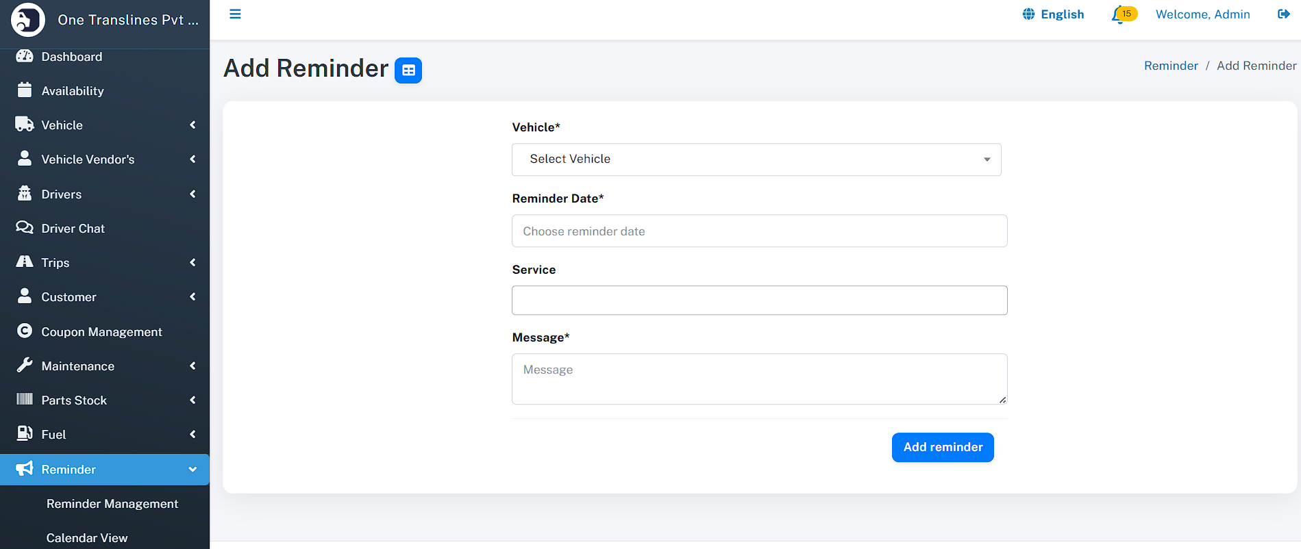 - Total Assets: Instant count of total Vehicles, Drivers, and Customers.